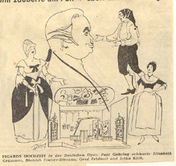 Zeichnung von Paul Gehring anlässlich der Neuinszenierung von "Le nozze di Figaro" an der Deutschen Oper Berlin 1963 |