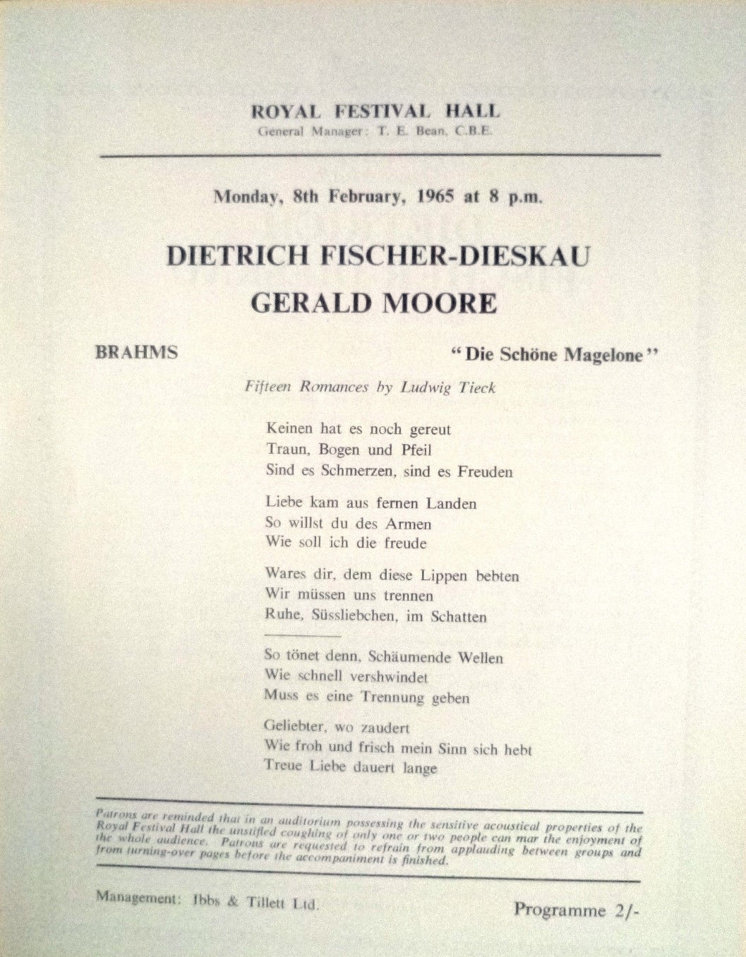 08.02.65 | London | Royal Festival Hall | Schöne Magelone | Moore, Gerald |