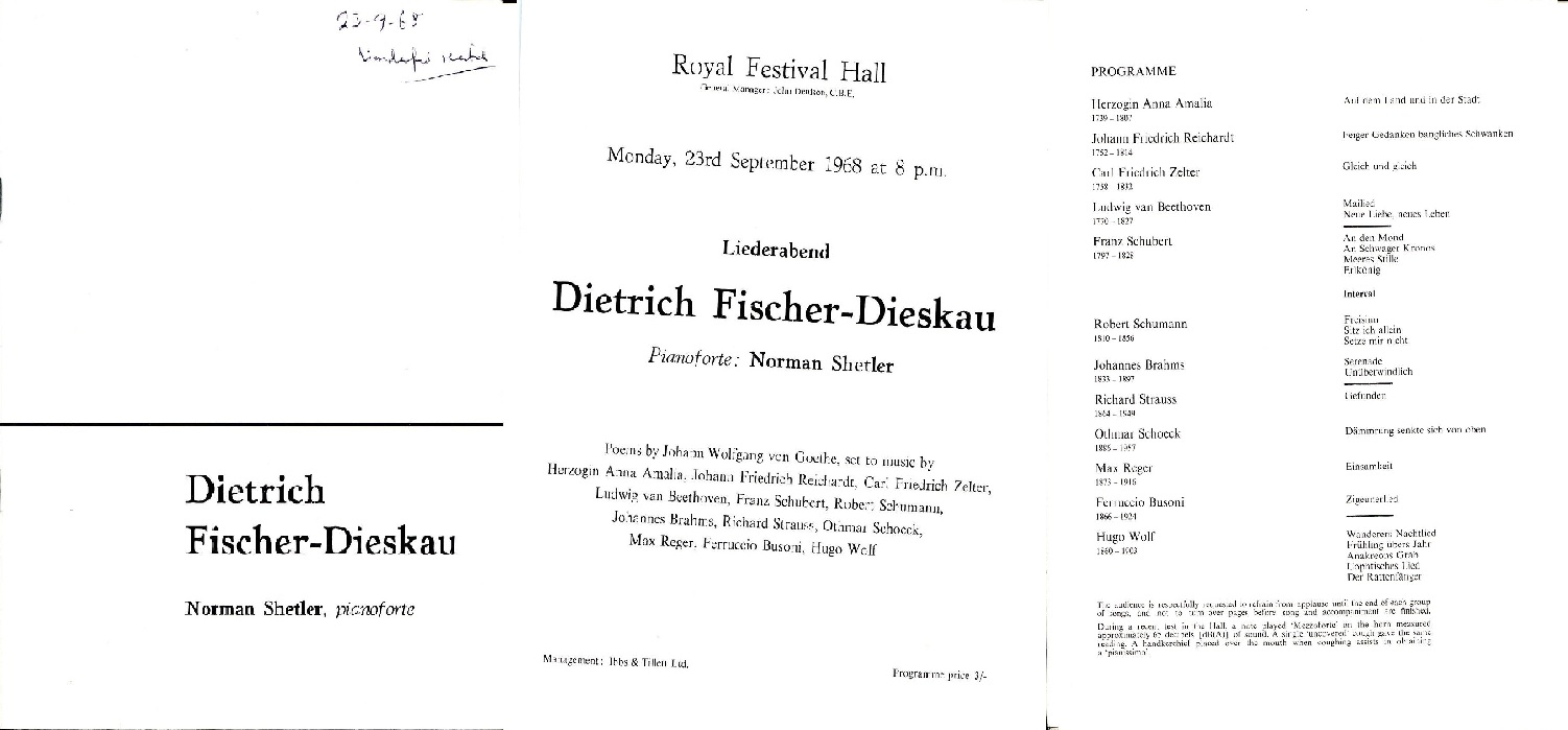 23.09.68 | London | Royal Festival Hall | Goethe-Lieder | Shetler, Norman |