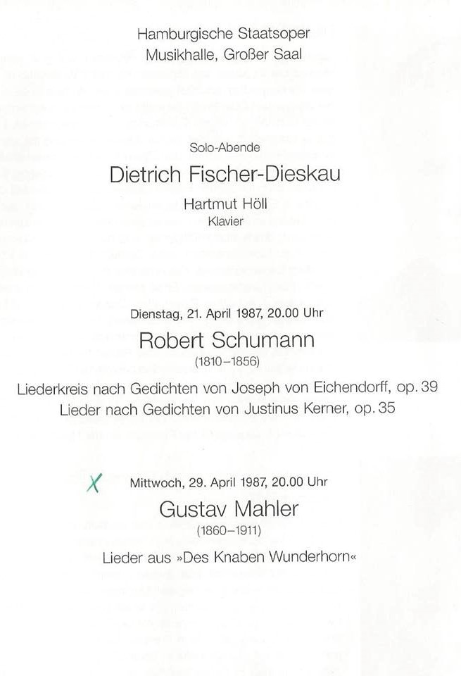 29.04.87 | Hamburg | Musikhalle | Mahler-Lieder | Höll, Hartmut |