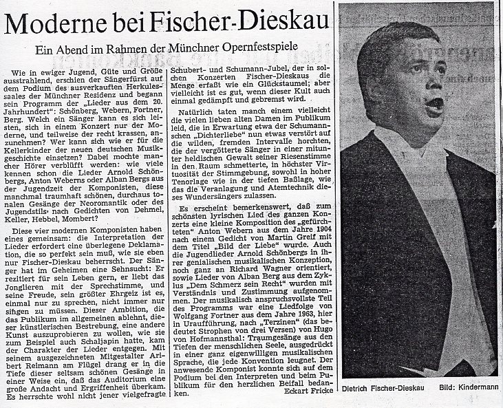 Liederabend Fischer-Dieskaus mit Werken der Moderne