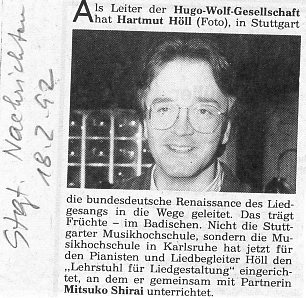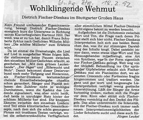 Zum Liederabend am 16. Februar 1992 in Stuttgart