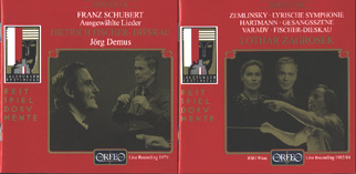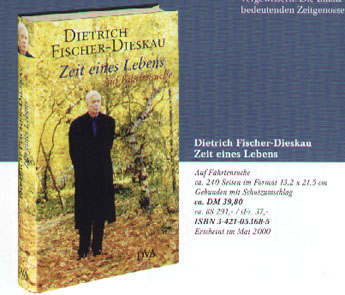 The Fischer-Dieskau edition of the DG has appeared now. Altogether 21 CDs with very carefully prepared booklets (three languages). 13 CDs are completely or partly first publications on CD. The bonus CD (this isn't sold one by one) contains Haydn, Beethoven and Weber and that one booklet is with tabular résumé and many (small) pictures. In Munich at Beck at a price of DM 300.--. Ordernumber DG 463 500-2. A first review by Dermot Clinch (New Statesman) (4.5.00)