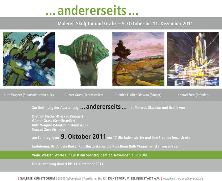 Die Ausstellung "Dietrich Fischer-Dieskau. Der Maler" bei Hugendubel am Salvatorplatz 2 in München (vis 18.Februar 2012) umfasst 16 z.T. bisher unbekannte Gemälde aus den Jahren 1964 bis 2003.