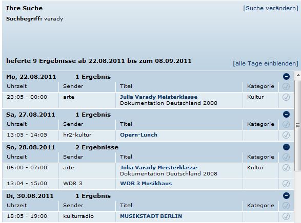 Geburtstagssendungen Julia Varady (ARD-Suche)